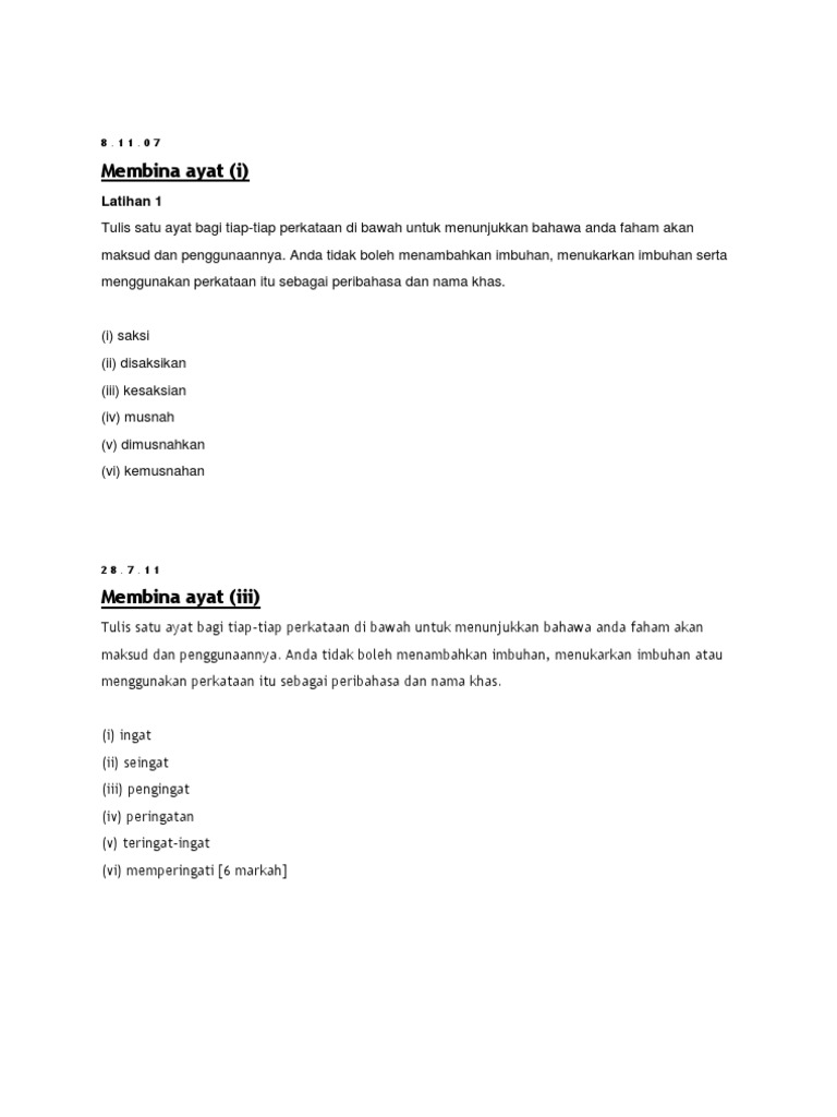 Kerajaan Gangga Negara meliputi Beruas dan. Apr 20 2017 latihan bina ayat BM tahun 1 dan 2 berdefinisi Cina. Apabila keputusan peperiksaan diumumkan Ahmad mendapat keputusan.